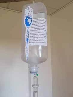 „verloren!“ Ein wichtiger Teil der Installation ist eine Infusionsflasche mit Wasser, die proportional der Wassermenge von 2,5 Billionen Litern entspricht, die jährlich in Deutschland verloren geht. Das Wasser, welches tropfenweise nach außen fließt, symbolisiert eine sich immer weiter verringerte Wasserreserve, die letztendlich nicht mehr ausreicht, um die Erde zu versorgen. Während der Ausstellungsdauer wird die Infusionsflasche langsam leer und das Wasser verschwindet, was die Dringlichkeit des Problems verdeutlicht und zum Nachdenken anregt. |